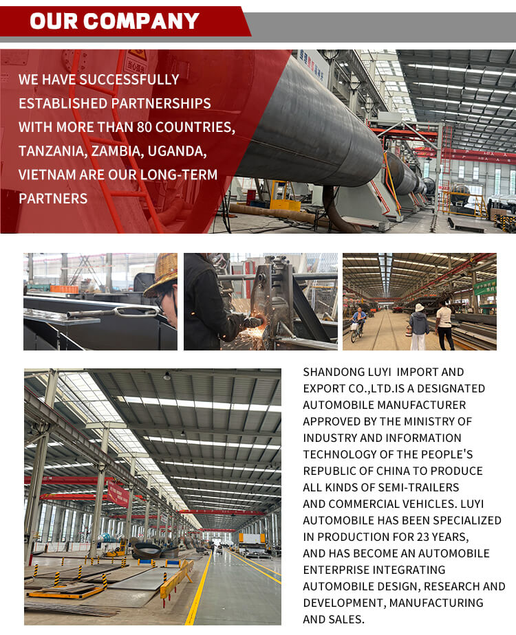 हमारा कारखाना न केवल ट्रैक्टर बनाता है, बल्कि डंप ट्रक, स्प्रिंकलर ट्रक, ट्रक क्रेन, मिक्सर ट्रक, डंप ट्रेलर, टैंक ट्रेलर, लो-बेड ट्रेलर, धूल हटाने वाले ट्रेलर आदि भी बनाता है। हमारा कारखाना बड़े पैमाने पर है और विभिन्न ग्राहक आवश्यकताओं के अनुसार विभिन्न उत्पादों को अनुकूलित कर सकता है।