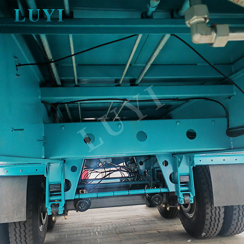 स्थिर मल्टी-सिलेंडर टिपिंग सिस्टम: ट्रेलर बॉडी के साथ वितरित शक्तिशाली, सिंक्रनाइज़ HYVA हाइड्रोलिक सिलेंडरों की एक श्रृंखला का उपयोग करता है। यह मल्टी-पॉइंट लिफ्टिंग सिस्टम सुचारू, स्थिर और नियंत्रित साइड-टिपिंग गति सुनिश्चित करता है, चेसिस पर तनाव को कम करता है और सुरक्षा बढ़ाता है।