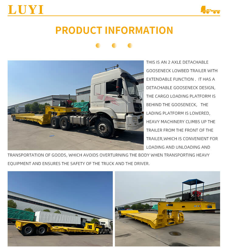 शेडोंग, चीन से शुरू हुआ, लुई डिटेचेबल गोज़नेक लोबॉय ट्रेलर एक पेशेवर अर्ध-ट्रेलर है जो हेवी-ड्यूटी परिवहन के लिए समर्पित है। उच्च गुणवत्ता वाले कार्बन स्टील से निर्मित, इसका मुख्य बीम उच्च शक्ति वाले Q345B/ST52-3 स्टील को अपनाता है, जो एक ठोस और टिकाऊ संरचना सुनिश्चित करता है। 12000 मिमी × 2500 मिमी × 1650 मिमी मापने वाला, यह विभिन्न कार्य परिदृश्यों के लिए उपयुक्त है।