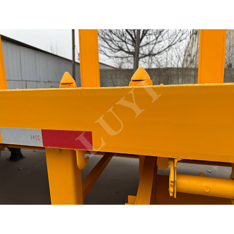 वाहन 2-एक्सल 13-टन एक्सल, वैकल्पिक बीपीडब्ल्यू या फ़ुहुआ ब्रांड से सुसज्जित है, जो मजबूत ड्राइविंग स्थिरता के लिए विश्वसनीय यांत्रिक निलंबन के साथ जोड़ा गया है; इसमें 12R22.5 टायरों का उपयोग किया गया है, जो विभिन्न सड़क स्थितियों के लिए उपयुक्त हैं, और मानक 28-टन आउटरिगर पार्किंग सुरक्षा सुनिश्चित करते हैं। किंगपिन दो विकल्प प्रदान करता है: 2-इंच (50 मिमी) या 3.5-इंच (90 मिमी) JOST, जो विभिन्न ट्रैक्टरों के साथ संगत है। कॉलम डिज़ाइन परिवहन के दौरान विस्थापन को रोकने के लिए लकड़ी को मजबूती से ठीक कर सकता है, और रंग को ग्राहक की जरूरतों के अनुसार अनुकूलित किया जा सकता है, व्यावहारिकता और लचीलेपन के संयोजन से लकड़ी रसद और परिवहन के लिए एक कुशल समाधान प्रदान किया जा सकता है।