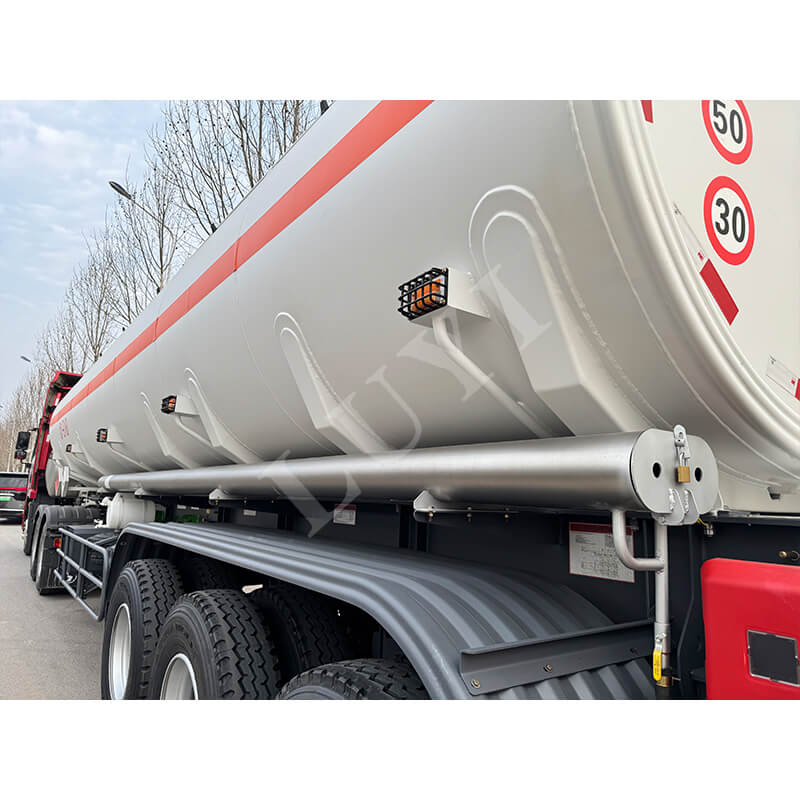 12500×2500×3600 मिमी के आयामों के साथ, टैंक बॉडी मुख्य रूप से स्टील से बनी है, और आवश्यकतानुसार इसे कार्बन स्टील या एल्यूमीनियम मिश्र धातु सामग्री के साथ भी जोड़ा जा सकता है। 3 एक्सल को CIMC Dongyue, FUWA और BPW सहित प्रसिद्ध ब्रांडों से सावधानीपूर्वक चुना गया है, और ड्राइविंग स्थिरता सुनिश्चित करने के लिए यांत्रिक निलंबन के साथ मिलान किया गया है। मुख्य घटक अच्छी तरह से सुसज्जित हैं: 28-टन JOST मानक समर्थन पैर स्थिर समर्थन प्रदान करते हैं; किंगपिन के पास 2 इंच (50 मिमी) या 3.5 इंच (90 मिमी) के वैकल्पिक JOST मॉडल हैं; टायर तीन विशिष्टताओं की पेशकश करते हैं जैसे 12R22.5; 90×13×10-लेयर लीफ स्प्रिंग्स लोड-असर प्रदर्शन को बढ़ाते हैं। इसके अलावा, रंग को विभिन्न परिवहन परिदृश्यों के अनुकूल, ग्राहकों की जरूरतों के अनुसार अनुकूलित किया जा सकता है।