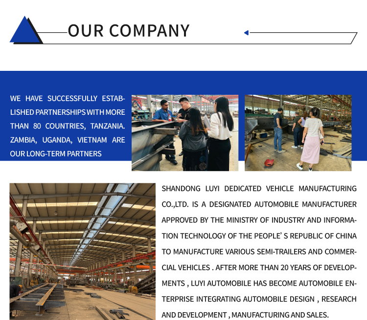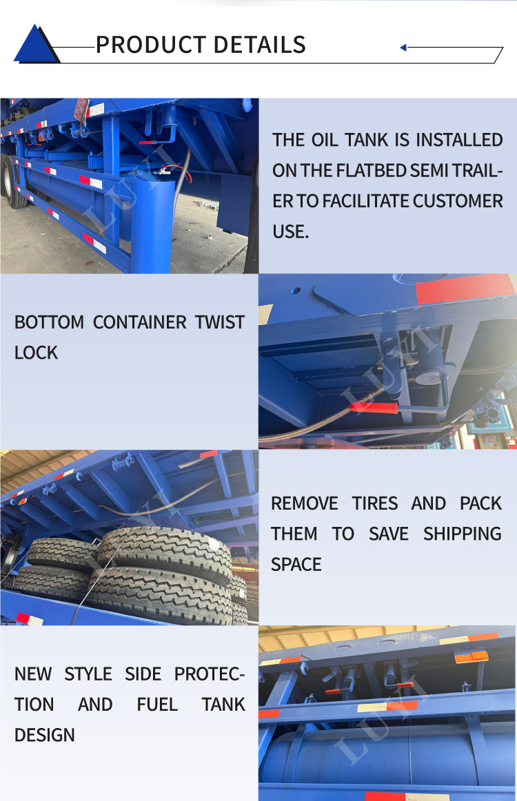 LUYI 3-एक्सल 4-फुट 50-टन फ्लैटबेड सेमी-ट्रेलर औद्योगिक लॉजिस्टिक्स और बुनियादी ढांचा परियोजनाओं के लिए एक हेवी-ड्यूटी वर्कहॉर्स है। इसका 3-एक्सल डिज़ाइन वैज्ञानिक रूप से 50-टन भार को वितरित करता है, सड़क के दबाव को कम करता है, राजमार्ग नियमों का अनुपालन करता है और ड्राइविंग स्थिरता सुनिश्चित करता है। लगभग 1.22 मीटर (रेलिंग/ग्राउंड क्लीयरेंस) का मुख्य आयाम लोडिंग/अनलोडिंग सुविधा और कार्गो सुरक्षा को संतुलित करता है, जो फोर्कलिफ्ट और क्रेन संचालन के लिए उपयुक्त है।