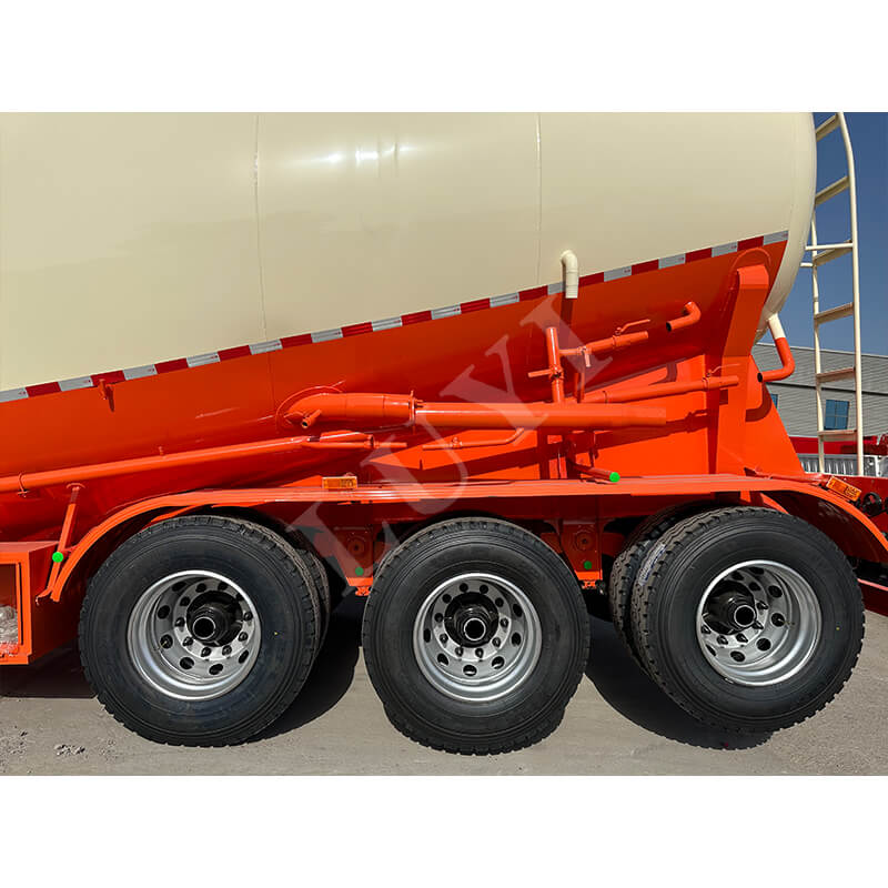 ट्रेलर का आयाम 10500×2550×4000 मिमी है। यह पार्किंग और ड्राइविंग के दौरान स्थिरता सुनिश्चित करने के लिए मैकेनिकल/एयर सस्पेंशन के दो विकल्पों, 3-एक्सल स्थिर संरचना और 28-टन हेवी-ड्यूटी आउटरिगर के साथ सुसज्जित है। डुअल-लाइन ब्रेकिंग सिस्टम सुरक्षा बढ़ाता है। टायर विकल्पों में 11.00r20 और 12r22.5 जैसे विभिन्न विनिर्देश शामिल हैं, और किंगपिन दो मॉडल में उपलब्ध है: JOST 50 मिमी / 90 मिमी। इसके अलावा, रंग को जरूरतों के अनुसार अनुकूलित किया जा सकता है, जो पूरी तरह से विभिन्न परिवहन परिदृश्यों और सौंदर्य संबंधी आवश्यकताओं के अनुकूल है, जिससे यह थोक सीमेंट परिवहन के लिए एक विश्वसनीय उपकरण बन जाता है।