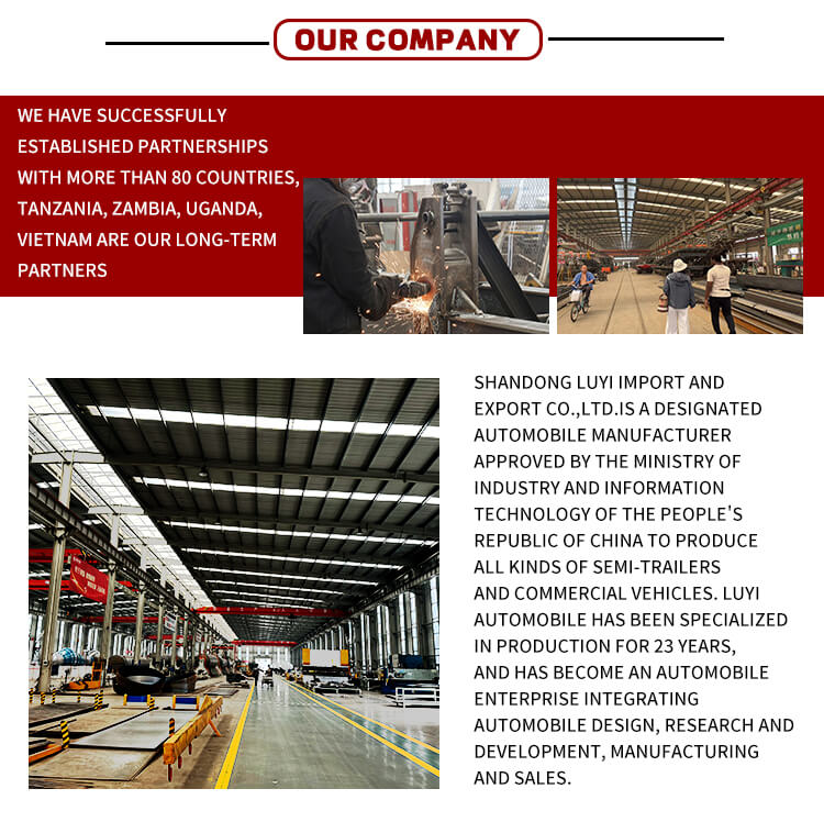 शेडोंग, चीन के ब्रांड LUYI का 3-एक्सल 40-टन गूज़नेक लोबेड सेमी-ट्रेलर, एक उच्च प्रदर्शन वाला ब्रांड-नया माल ढुलाई उपकरण है। उच्च शक्ति वाले T700/Q345 स्टील से निर्मित, इसका माप 1100030001800 मिमी है और इसका अधिकतम पेलोड 30000 किलोग्राम से अधिक है, जो असाधारण भार वहन क्षमता प्रदान करता है।