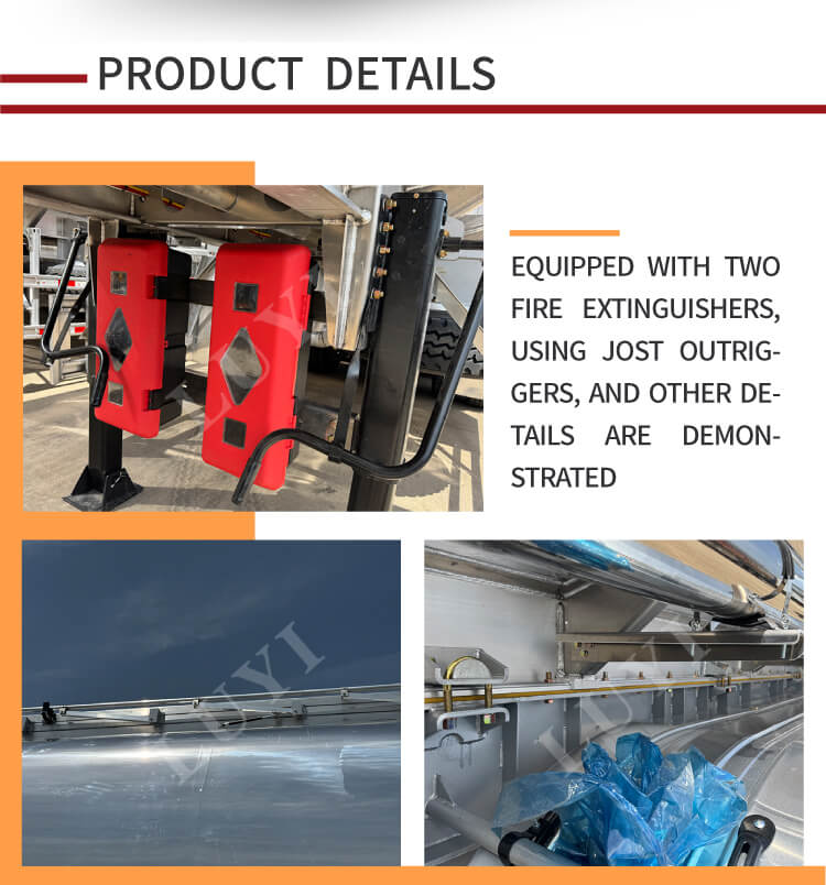 LUYI 3-एक्सल 45,000L 5-टैंक एल्यूमीनियम मिश्र धातु तेल टैंक सेमी-ट्रेलर, चीन के शेडोंग प्रांत से शुरू हुआ, तेल परिवहन के लिए एक उच्च दक्षता और सुरक्षित उपकरण है। इसका आयाम 12,500×2,500×3,600 मिमी और अधिकतम प्रभावी भार क्षमता 60 टन है, जो डीजल, गैसोलीन, पेट्रोलियम और कच्चे तेल जैसे मीडिया को लचीले ढंग से परिवहन करने में सक्षम है।