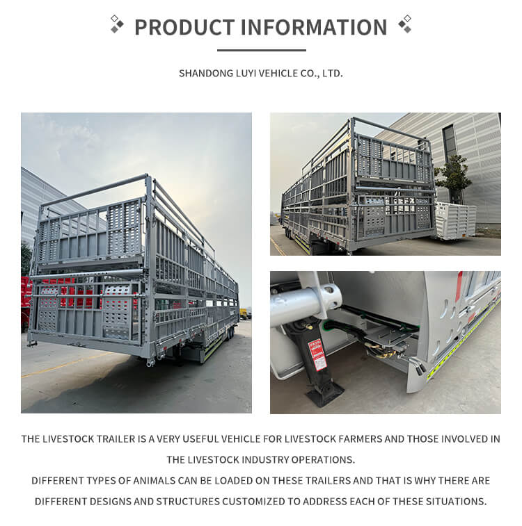 चीन के शेडोंग प्रांत से शुरू होने वाला LUYI 3-एक्सल 60-टन डबल-लेयर स्टेक सेमी-ट्रेलर, पशुधन और थोक कार्गो परिवहन के लिए समर्पित एक उच्च दक्षता वाला ट्रक सेमी-ट्रेलर है। इसके पास आईएसओ, सीसीसी, बीवी, सीई और डीओटी सहित कई प्रमाणपत्र हैं, जो अनुपालन और विश्वसनीय गुणवत्ता सुनिश्चित करते हैं।