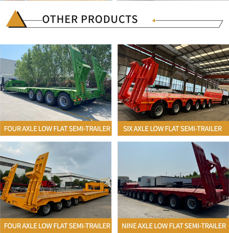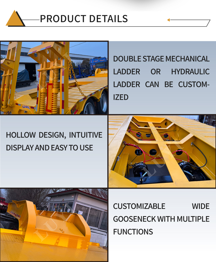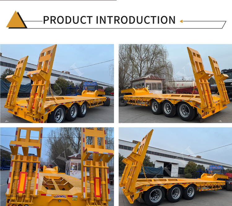 3 प्रीमियम फूवा या बीपीडब्ल्यू एक्सल से सुसज्जित, ट्रेलर विविध सड़कों पर स्थिर सवारी के लिए लचीले निलंबन विकल्प (मैकेनिकल या वायु) प्रदान करता है। यह 12R22.5/12.00R20/11R22.5 टायर विकल्पों, भारी उपकरणों की सुविधाजनक लोडिंग/अनलोडिंग के लिए एक हाइड्रोलिक सीढ़ी और सुरक्षित पार्किंग के लिए मानक 28-टन लैंडिंग गियर के साथ आता है। 2-इंच (50 मिमी) या 3.5-इंच (90 मिमी) जोस्ट किंग पिन ट्रैक्टरों के साथ मजबूत कनेक्शन सुनिश्चित करता है, जबकि अनुकूलन योग्य रंग वैयक्तिकरण मांगों को पूरा करते हैं। टिकाऊ, अनुकूलनीय, यह कुशल भारी माल परिवहन के लिए आदर्श है।