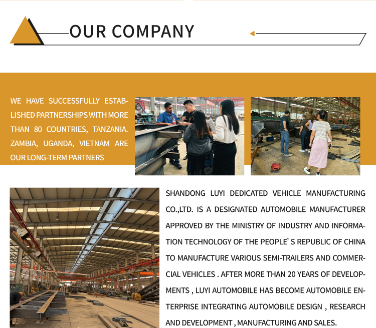 हमारा कारखाना न केवल ट्रैक्टर बनाता है, बल्कि डंप ट्रक, स्प्रिंकलर ट्रक, ट्रक क्रेन, मिक्सर ट्रक, डंप ट्रेलर, टैंक ट्रेलर, लो-बेड ट्रेलर, धूल हटाने वाले ट्रेलर आदि भी बनाता है। हमारा कारखाना बड़े पैमाने पर है और विभिन्न ग्राहक आवश्यकताओं के अनुसार विभिन्न उत्पादों को अनुकूलित कर सकता है।