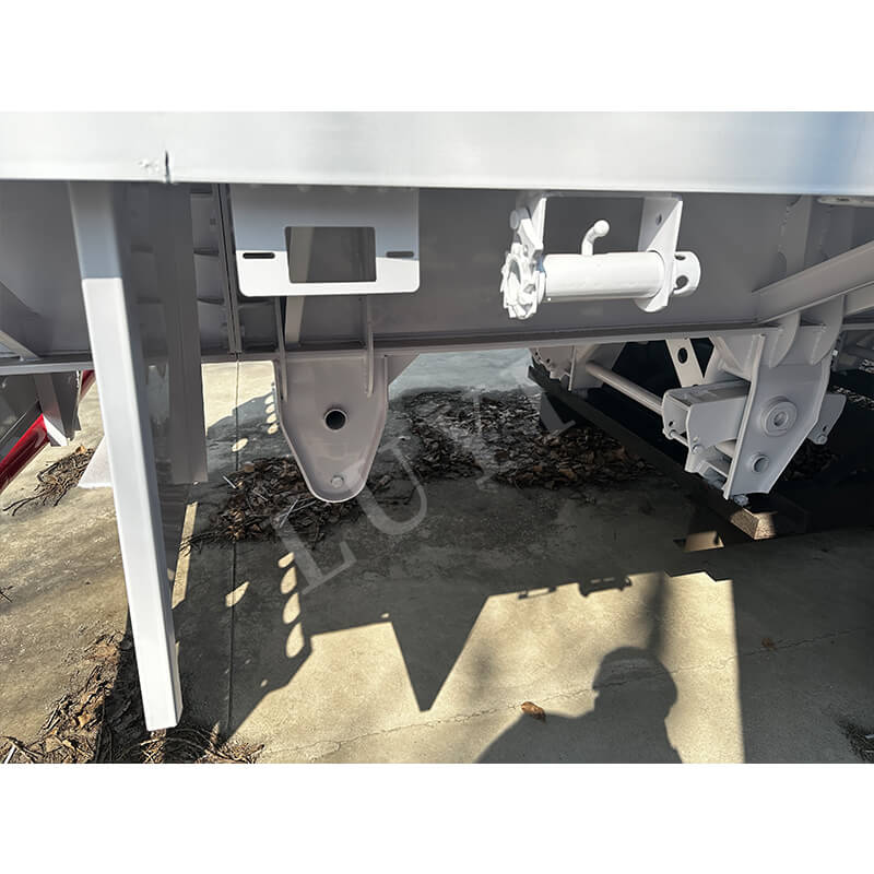 12500×2500×1600 मिमी मापने वाला, यह 3 एक्सल (फुहुआ, बीपीडब्ल्यू, एसएआईएफ और सीआईएमसी जैसे प्रसिद्ध ब्रांडों से वैकल्पिक) और सुचारू ड्राइविंग के लिए दोहरे निलंबन विकल्प (मैकेनिकल और एयर सस्पेंशन) से सुसज्जित है। मानक 28-टन समर्थन पैर सुरक्षित लोडिंग और अनलोडिंग सुनिश्चित करते हैं, जबकि 12R22.5/12.00R20/11R22.5 विनिर्देशों वाले टायर विभिन्न सड़क स्थितियों के अनुकूल होते हैं। इसके अतिरिक्त, 90×13×10 मिमी लीफ स्प्रिंग्स भार-वहन क्षमता को बढ़ाते हैं, यांत्रिक सीढ़ी परिचालन सुविधा में सुधार करती है, रंग अनुकूलन योग्य होते हैं, और वाल्व-नियंत्रित ब्रेकिंग सिस्टम ड्राइविंग सुरक्षा को बढ़ाता है, परिवहन के लिए विश्वसनीय समर्थन प्रदान करता है।