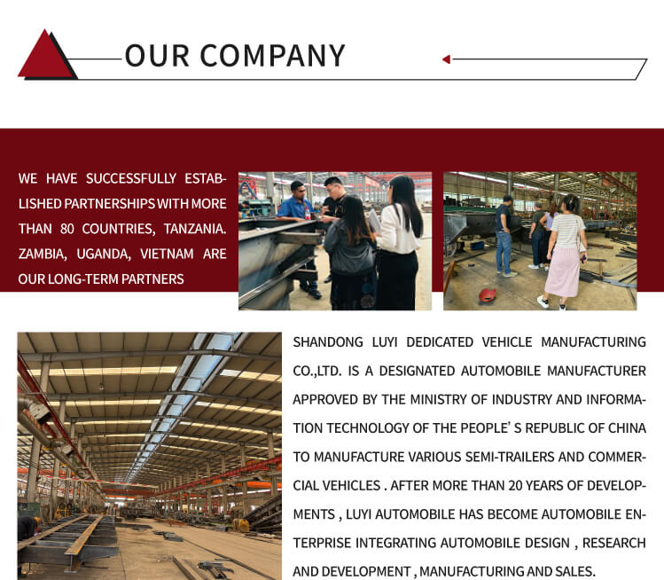 विवरण के संदर्भ में, यह विभिन्न ट्रैक्टरों के साथ संगतता के लिए दो विशिष्टताओं (2" / 50 मिमी या 3.5" / 90 मिमी) में एक मानक 28-टन लैंडिंग गियर और जोस्ट किंग पिन से सुसज्जित है। शरीर के रंग को ग्राहकों की आवश्यकताओं के अनुसार अनुकूलित किया जा सकता है, और पॉलीयूरेथेन पेंट एक वैकल्पिक अपग्रेड है, जो सौंदर्यशास्त्र और संक्षारण प्रतिरोध दोनों को बढ़ाता है। यह इंजीनियरिंग, खनन और अन्य भारी-भरकम परिवहन क्षेत्रों के लिए एक विश्वसनीय विकल्प है।