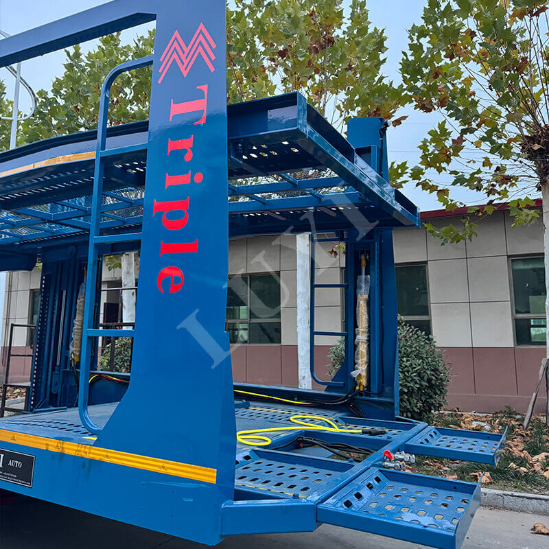 लुयी 3-एक्सल कार ट्रांसपोर्ट सेमी-ट्रेलर, 17-मीटर कंटेनर ट्रेलर, चीन में बने एक नए हेवी-ड्यूटी परिवहन उपकरण के रूप में, विशेष रूप से कारों और कंटेनरों के स्थानांतरण के लिए डिज़ाइन किया गया है। 25 टन की भार क्षमता के साथ, यह मुख्यधारा की माल ढुलाई आवश्यकताओं को पूरा करता है और विश्वसनीयता के साथ व्यावहारिकता को जोड़ता है।