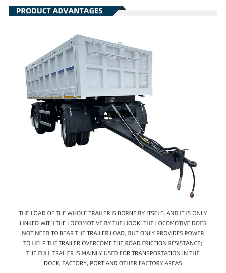 यह उत्पाद एक 3-एक्सल फुल-ट्रेलर डंप सेमी-ट्रेलर है, जिसे विशेष रूप से कोयला खनन परिवहन परिदृश्यों के लिए डिज़ाइन किया गया है, जिसमें उच्च शक्ति लोड-बेयरिंग और लचीली अनुकूलनशीलता के मुख्य फायदे हैं।