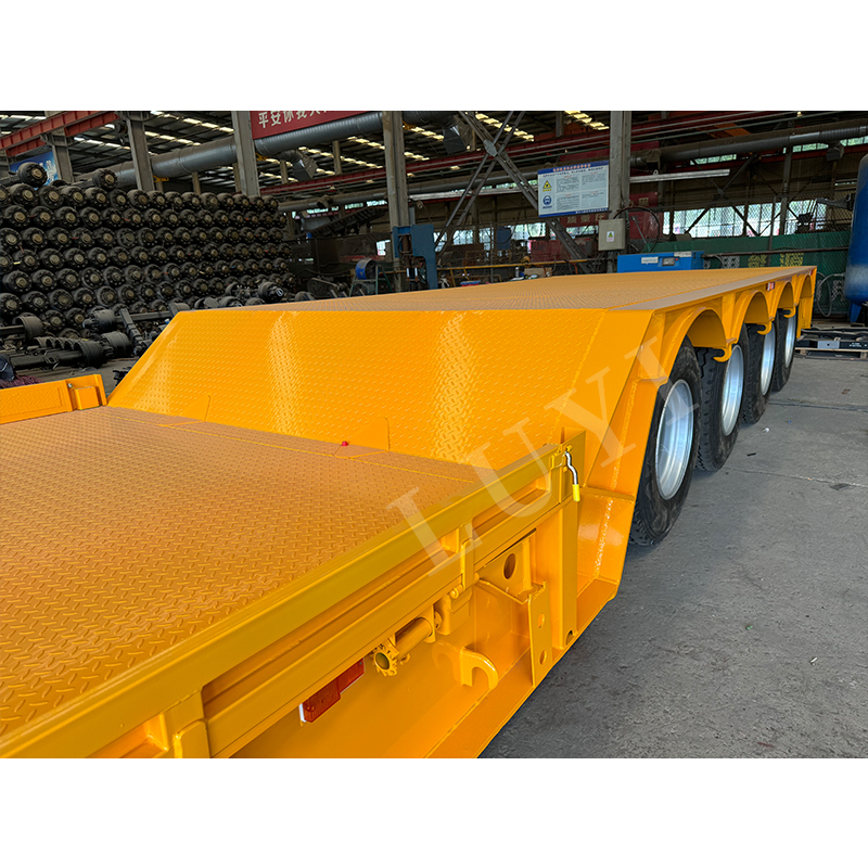 ट्रेलर वैकल्पिक यांत्रिक या वायु निलंबन प्रदान करता है, जिसे 90 (चौड़ाई) × 13 (मोटाई) × 10 (परतें) लीफ स्प्रिंग्स और वैकल्पिक 12R22.5/12.00R20/11R22.5 टायर के साथ जोड़ा गया है, जो स्थिर और विश्वसनीय सुनिश्चित करता है।सक्षम परिवहन. यह मजबूत स्थिरता के लिए JOST मानक 28-टन सपोर्ट लेग्स से भी सुसज्जित है। लुयी ब्रांड ठोस सामग्री और उत्तम शिल्प कौशल के साथ उत्पाद की गुणवत्ता बनाता है, जो भारी उपकरणों के लंबी दूरी के परिवहन के लिए एक सुरक्षित और कुशल समाधान प्रदान करता है।