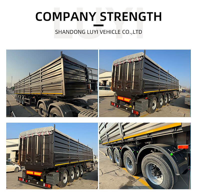 उच्च गुणवत्ता वाले कार्बन स्टील से तैयार, ट्रेलर 9500x2500x3600MM के आयामों के साथ एक टिकाऊ संरचना का दावा करता है। इसमें 4-एक्सल सेटअप है, जो मैकेनिकल सस्पेंशन और 90(W)mm×13(मोटाई)mm×10(लेयर) लीफ स्प्रिंग्स के साथ जोड़ा गया है, जो कठिन परिस्थितियों में भी स्थिर लोड-बेयरिंग सुनिश्चित करता है। अधिकतम पेलोड 80 टन तक पहुंचता है, जबकि टायर विकल्प (12R22.5/12.00R20/11R22.5) और JOST मानक 28 टन लैंडिंग गियर अनुकूलन क्षमता और सुरक्षा को बढ़ाते हैं। रंग ग्राहकों की प्राथमिकताओं के अनुरूप है, जो इसे थोक सामग्री परिवहन के लिए एक विश्वसनीय, बहुमुखी विकल्प बनाता है।