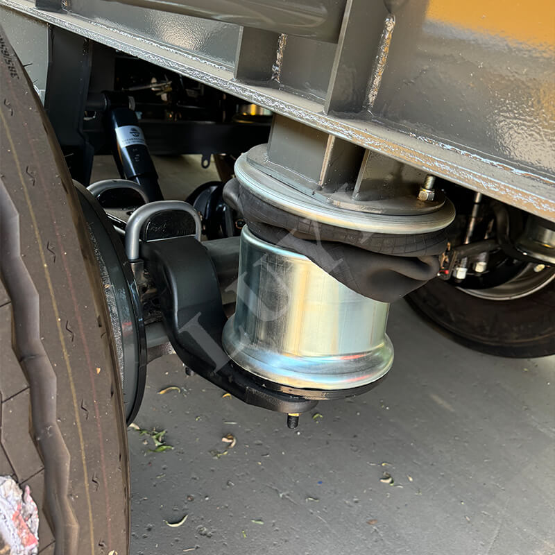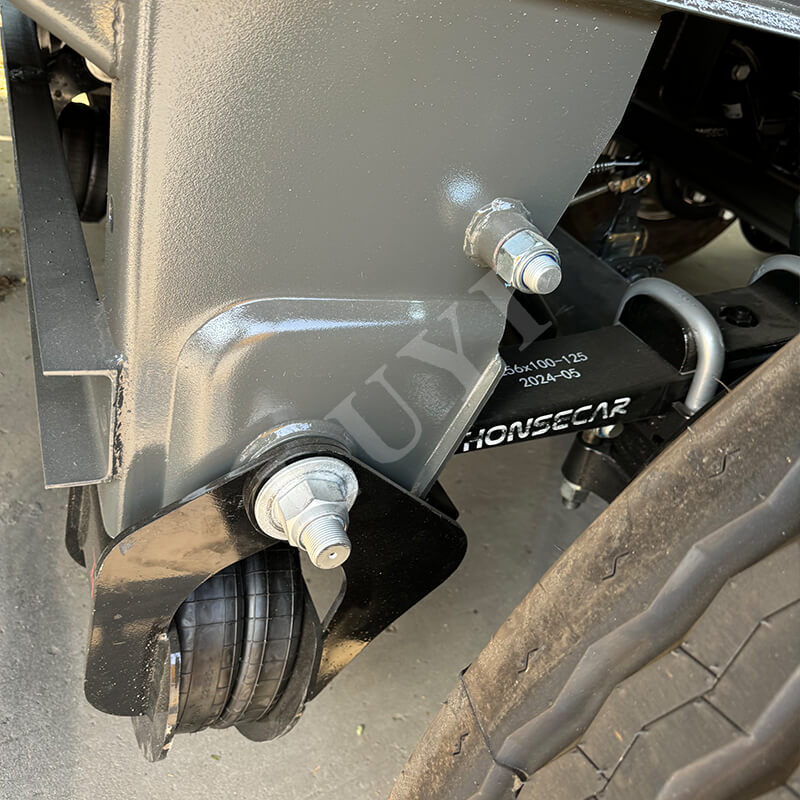 वाहन 12R22.5 ट्यूबलेस टायरों से सुसज्जित है, जिन्होंने ECE, GCC, ISO और DOT सहित कई अंतरराष्ट्रीय प्रमाणपत्र पारित किए हैं। ये टायर पहनने के लिए प्रतिरोधी, टिकाऊ होते हैं और टायर फटने के जोखिम को कम करते हैं। यह 2/3/4 एक्सल का लचीला विन्यास प्रदान करता है, जो 2-इंच (50 मिमी) या 3.5-इंच (90 मिमी) जोस्ट किंगपिन के साथ जोड़ा जाता है, जो विभिन्न ट्रैक्टरों के अनुकूल होता है और विभिन्न परिवहन परिदृश्यों को पूरा करता है। मैकेनिकल सस्पेंशन सिस्टम स्थिर ड्राइविंग सुनिश्चित करता है, और फुल-एयरबैग रोलओवर डिज़ाइन अनलोडिंग दक्षता में काफी सुधार करता है और श्रम लागत को कम करता है।