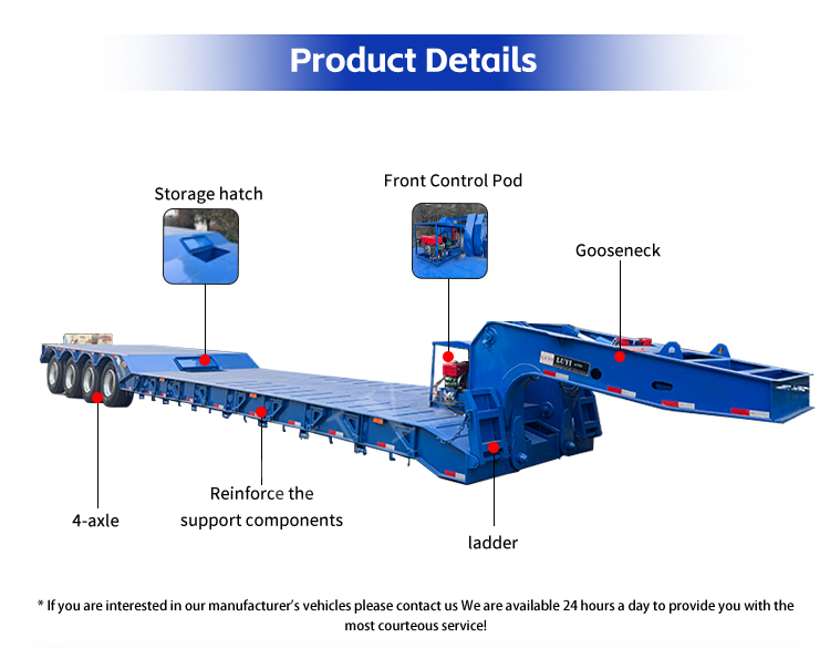 गूज़नेक डिज़ाइन आसान लोडिंग और अनलोडिंग को सक्षम बनाता है, जिससे भारी मशीनरी को अतिरिक्त सहायक उपकरण के बिना ट्रेलर पर चलने की अनुमति मिलती है। निर्माण मशीनरी, खनन उपकरण और बड़े इस्पात उत्पादों के परिवहन के लिए आदर्श, यह सेमी-ट्रेलर दक्षता और सुरक्षा को संतुलित करता है, जिससे यह रसद और इंजीनियरिंग संचालन के लिए एक विश्वसनीय विकल्प बन जाता है।