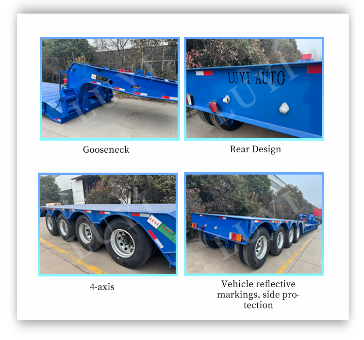 LUYI 4-एक्सल गूज़नेक लोबेड सेमी-ट्रेलर, जो चीन के शेडोंग से शुरू हुआ है, एक उच्च गुणवत्ता वाला सेमी-ट्रेलर है जिसे विशेष रूप से भारी कार्गो परिवहन के लिए डिज़ाइन किया गया है। प्रीमियम स्टील से निर्मित, इसका वजन केवल 6,350KG, रेटेड भार क्षमता 50,000KG और अधिकतम पेलोड 30T से 200T तक है, जो असाधारण भार-वहन प्रदर्शन प्रदान करता है।