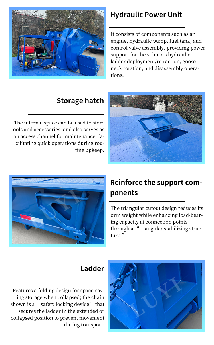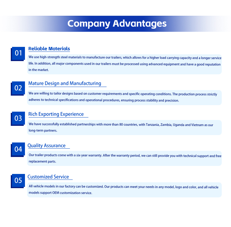 1300030001700 मिमी के समग्र आयाम के साथ, इसमें 1300030001250 मिमी का एक बड़ा लोडिंग प्लेटफ़ॉर्म है। 3 मिमी डायमंड प्लेट एंटी-स्लिप और पहनने के प्रतिरोध को सुनिश्चित करती है, स्थिर कार्गो परिवहन की गारंटी देती है। इसके मुख्य घटकों में उत्कृष्ट ब्रेकिंग प्रदर्शन और स्थायित्व के लिए 13-टन FUWA एक्सल के तीन सेट शामिल हैं, जो जटिल सड़क स्थितियों के अनुकूल 11.00R20 टायरों के साथ जोड़े गए हैं। 50 मिमी/90 मिमी डुअल-स्पेक ट्रैक्शन पिन और मानक 28-टन लैंडिंग गियर विभिन्न ट्रैक्शन आवश्यकताओं को पूरा करते हैं और पार्किंग स्थिरता सुनिश्चित करते हैं।
