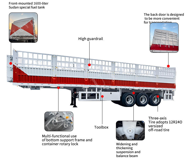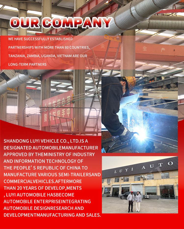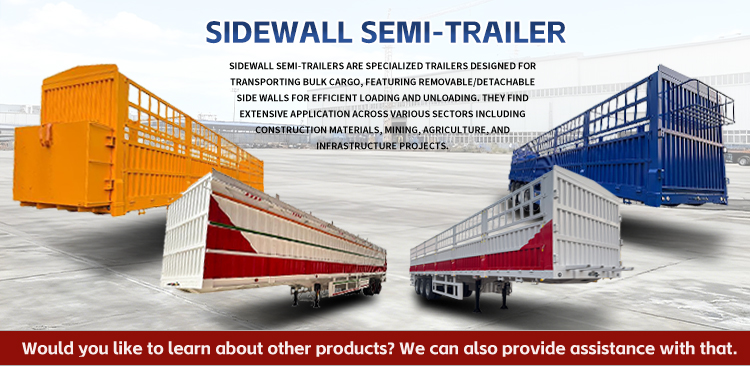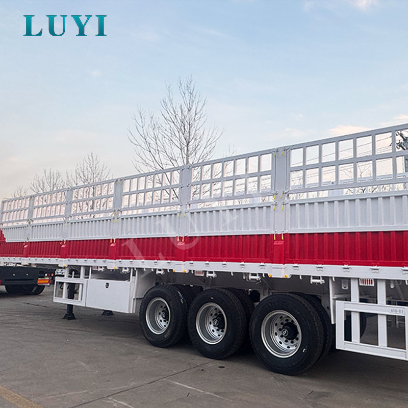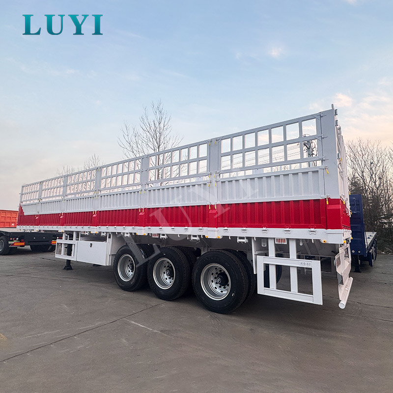 LUYI 3-एक्सल साइडवॉल सेमी-ट्रेलर एक हेवी-ड्यूटी ट्रांसपोर्ट वर्कहॉर्स है जो थोक कार्गो जरूरतों के लिए बनाया गया है, जो 50T, 60T और 80T लोड क्षमताओं में उपलब्ध है। 1550025504000 मिमी मापने वाला, इसमें एक मजबूत स्टील बॉडी है और यह दो निलंबन विकल्पों के साथ आता है: लागत प्रभावी स्थायित्व के लिए यांत्रिक निलंबन और उबड़-खाबड़ सड़कों पर आसान सवारी के लिए वायु निलंबन। फ़ेइची, बीपीडब्ल्यू या फूवा के 12 पीसी 12आर22.5 टायर और शीर्ष स्तरीय एक्सल से सुसज्जित, यह अधिकतम भार के तहत भी स्थिर प्रदर्शन सुनिश्चित करता है।