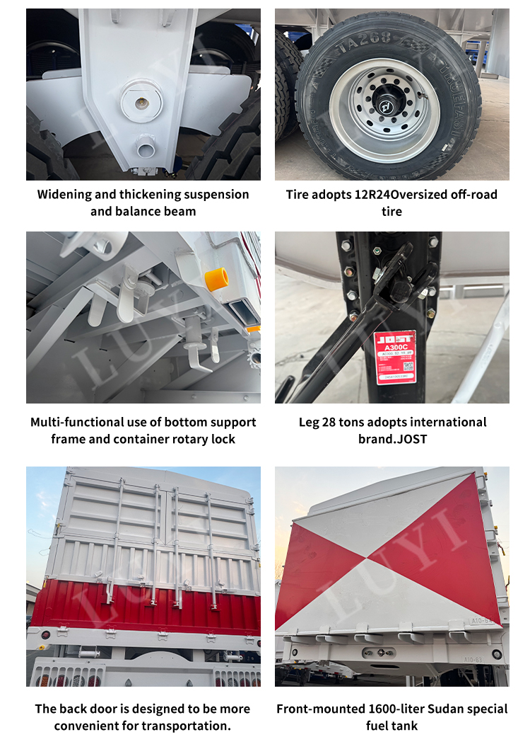 बेहतर सुरक्षा के लिए ट्रेलर में जोस्ट 28-टन लैंडिंग गियर और एबीएस एंटी-लॉक ब्रेकिंग सिस्टम लगाया गया है। वैश्विक गुणवत्ता मानकों को पूरा करते हुए इसके पास ECE, GCC, CE, DOT और ISO/TS16949 सहित कई प्रमाणपत्र हैं। यह नॉन-सेल्फ-डंपिंग है और कस्टम रंग विकल्पों का समर्थन करता है। कोयला, अनाज, अयस्कों और कृषि वस्तुओं के परिवहन के लिए आदर्श, यह बिल्कुल नया ट्रेलर मध्य एशिया और अफ्रीका में कठिन सड़क स्थितियों से निपटने के लिए तैयार किया गया है, जो रसद बेड़े, खदानों और खेतों के लिए विश्वसनीय प्रदर्शन प्रदान करता है।