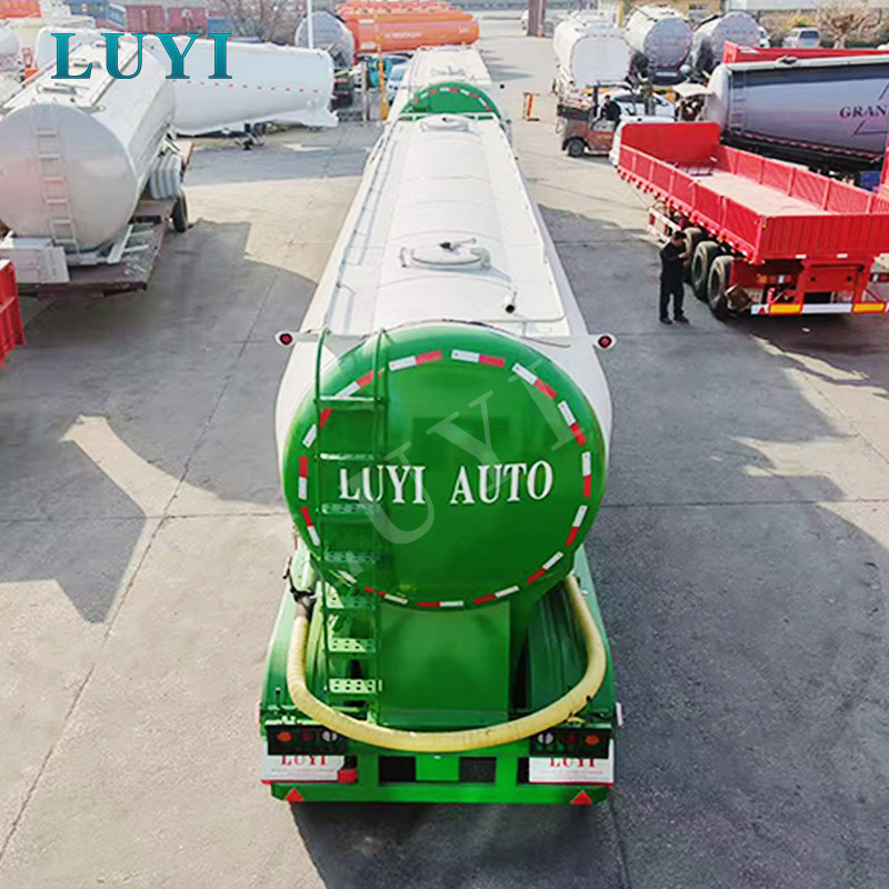 यह ट्रेलर किन सामग्रियों का परिवहन कर सकता है? सूखा पाउडर/दानेदार सामग्री जैसे सीमेंट, फ्लाई ऐश, खनिज पाउडर, चूना पाउडर, दानेदार क्षार, और पाउडर उर्वरक।