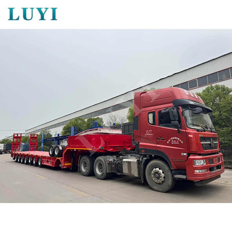LUYI 8-एक्सल 120T एयर सस्पेंशन लो-बेड सेमी-ट्रेलर, शेडोंग, चीन से शुरू हुआ, एक उच्च प्रदर्शन वाला सेमी-ट्रेलर है जिसे विशेष रूप से हेवी-ड्यूटी उपकरण परिवहन के लिए डिज़ाइन किया गया है। उच्च गुणवत्ता वाले स्टील से बना, इसका माप 22000×3000×1600 मिमी है और अधिकतम 100T पेलोड है, जो विभिन्न भारी उपकरणों की परिवहन आवश्यकताओं को आसानी से पूरा करता है।