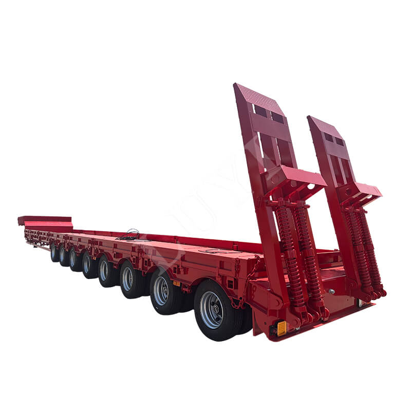 ट्रेलर एक वापस लेने योग्य फ़ंक्शन के साथ आता है, जो लचीले ढंग से विभिन्न आकारों के भारी उपकरणों की परिवहन आवश्यकताओं को अनुकूलित करता है। इसे मानक 28-टन लैंडिंग गियर और 2-इंच (50 मिमी) या 3.5-इंच (90 मिमी) आकार में वैकल्पिक JOST किंगपिन के साथ कॉन्फ़िगर किया गया है, जो कनेक्शन स्थिरता और अनुप्रयोग अनुकूलनशीलता सुनिश्चित करता है। रंग में अनुकूलन योग्य, यह अपनी विश्वसनीय संरचना और पेशेवर कॉन्फ़िगरेशन के कारण भारी उपकरण परिवहन के लिए पसंदीदा ट्रक ट्रेलर बन जाता है।