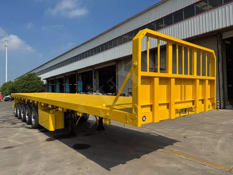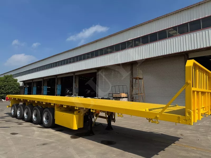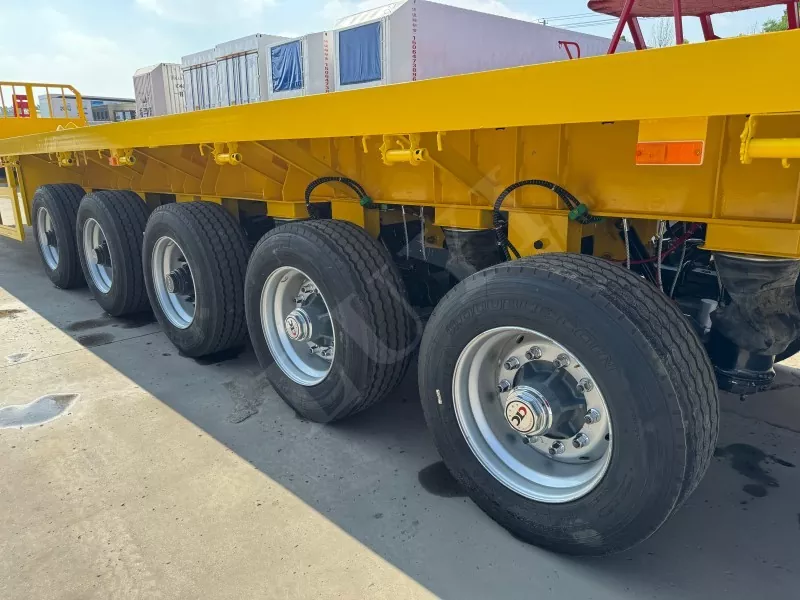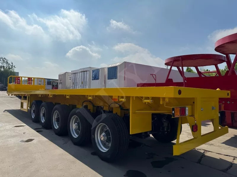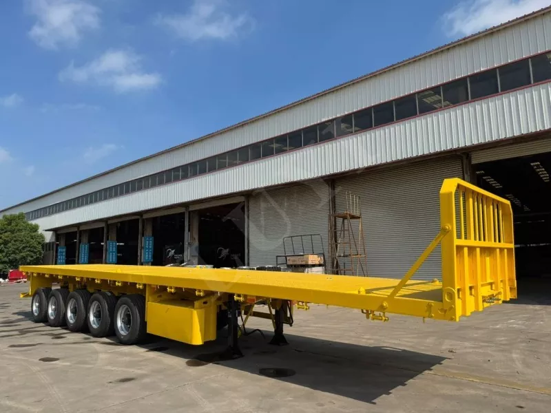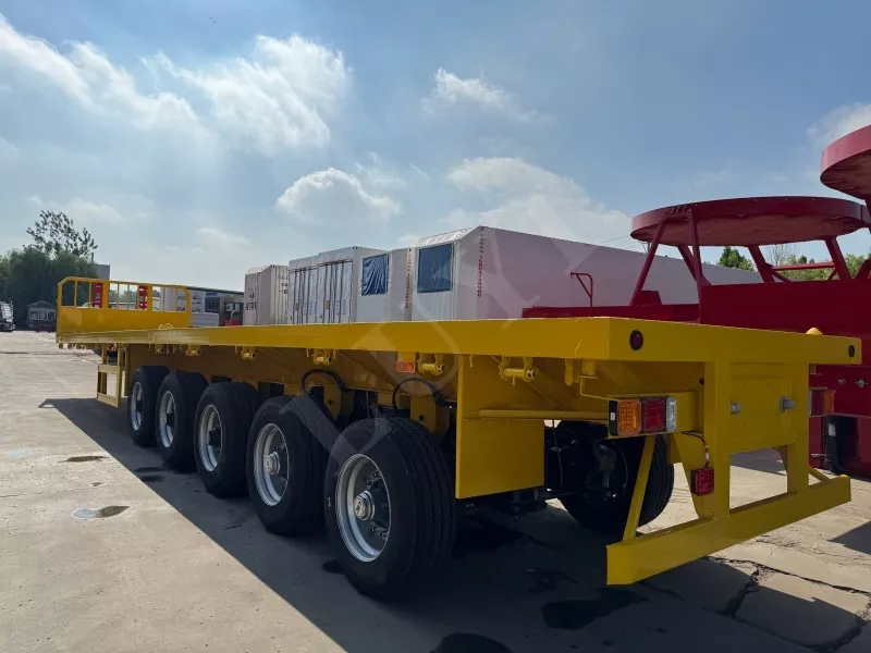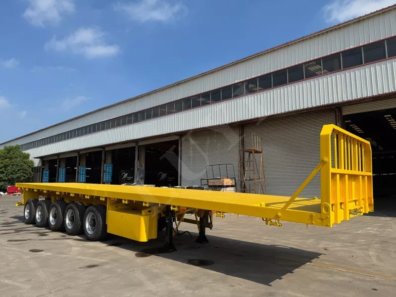 हमारा कंटेनरीकृत फ्लैटबेड सेमी-ट्रेलर 14.5 मीटर लंबा और 2.5 मीटर चौड़ा है, जिसमें 5-एक्सल फ्लैटबेड सेमी-ट्रेलर, पीछे के 2 एक्सल पर सीटीसी फॉलो-अप स्टीयरिंग फ़ंक्शन है, जो 100 टन परिवहन करने में सक्षम है, और 12 कंटेनर लॉक से सुसज्जित है।