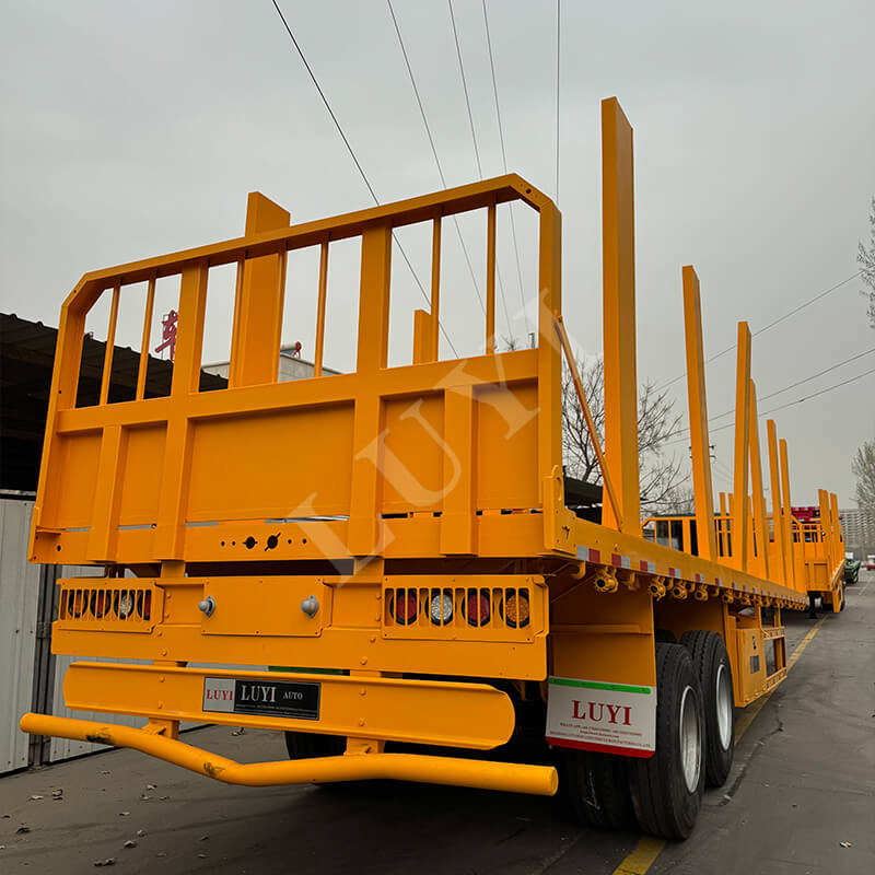 LUYI का 2-एक्सल 40-टन कॉलम फ्लैटबेड ट्रेलर व्यापक अनुकूलन विकल्पों के साथ लकड़ी के परिवहन के लिए तैयार किया गया है। लॉग, लकड़ी, या अन्य लकड़ी के उत्पादों को फिट करने के लिए साइडबोर्ड की ऊंचाई (30-80 सेमी उपलब्ध) को समायोजित करें, और बेहतर पकड़ के लिए चेकर प्लेट स्टील या एंटी-स्लिप लेपित डेक के बीच चयन करें।