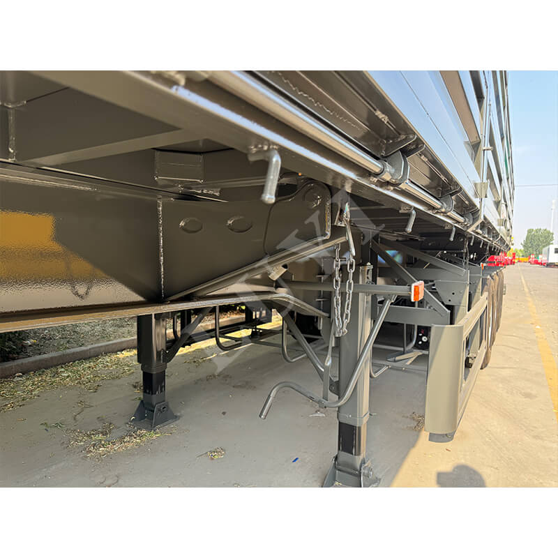 LUYI 60-टन क्लास 4-एक्सल साइड-टिपर सेमी-ट्रेलर को खदानों और बुनियादी ढांचा परियोजनाओं जैसे परिदृश्यों में हेवी-ड्यूटी बल्क कार्गो परिवहन के लिए अनुकूलित किया गया है। यह एक साइड-टिपिंग हाइड्रोलिक अनलोडिंग संरचना को अपनाता है, जो संकीर्ण स्थानों में त्वरित अनलोडिंग और मिनटों के भीतर पूरा कंपार्टमेंट खाली करने में सक्षम बनाता है, जिससे माल ढुलाई दक्षता में काफी सुधार होता है। कोर लोड-बेयरिंग घटक उच्च शक्ति वाले टिकाऊ स्टील से बने होते हैं, जो 4-एक्सल डिज़ाइन और एयर सस्पेंशन एयरबैग के साथ जोड़े जाते हैं। यह न केवल 60-टन भारी भार के दबाव को वितरित करता है और नियामक आवश्यकताओं को पूरा करता है, बल्कि भार के अनुसार सदमे अवशोषण कठोरता को भी समायोजित करता है, जिससे कार्गो झटका और सड़क प्रभाव कम हो जाता है। पूरा वाहन कुशल उतराई, भारी भार स्थायित्व और ड्राइविंग स्थिरता को संतुलित करता है, जिससे यह भारी शुल्क वाले थोक माल परिवहन के लिए एक विश्वसनीय विकल्प बन जाता है।