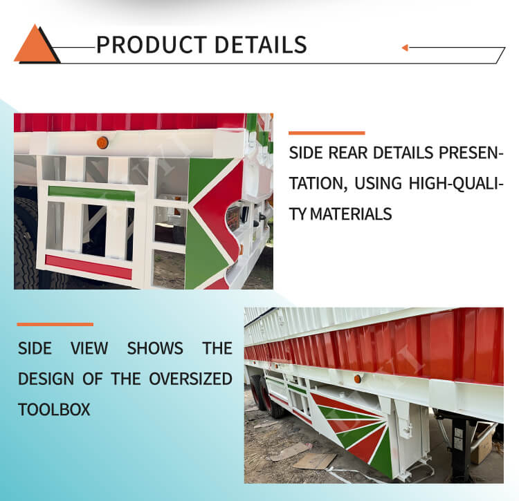 उत्पाद का आयाम 12500×2500×1600 मिमी है, जो 3 एक्सल (वैकल्पिक ZY, फ़ुहुआ, BPW ब्रांड) और सुचारू ड्राइविंग सुनिश्चित करने के लिए मैकेनिकल/एयर सस्पेंशन के दोहरे विकल्पों से सुसज्जित है। इसे JOST मानक 28-टन सपोर्ट लेग्स और 12R22.5/12.00R20/11R22.5 विनिर्देशों के टायरों के साथ जोड़ा गया है, जो लोडिंग-अनलोडिंग सुरक्षा और सड़क की स्थिति के अनुकूल अनुकूलनशीलता को और बढ़ाता है। इसके अलावा, 90×13×10 मिमी लीफ स्प्रिंग्स लोड-असर स्थिरता में सुधार करते हैं, और रंग को आवश्यकतानुसार अनुकूलित किया जा सकता है, जो रसद और परिवहन के लिए एक विश्वसनीय और लचीला अनुकूलित समाधान प्रदान करता है।