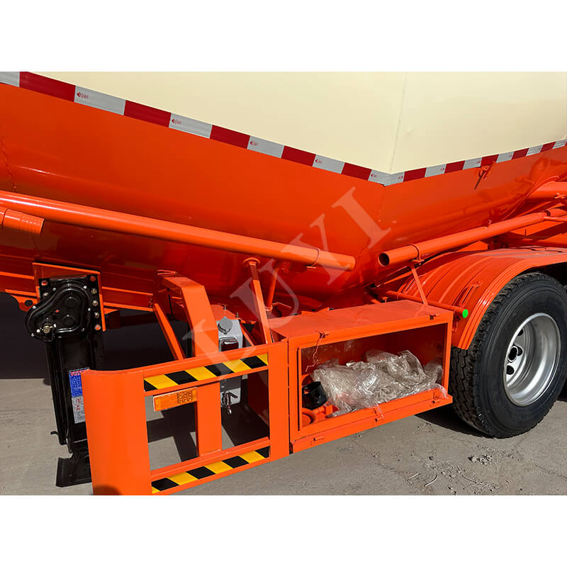 ट्रेलर का आयाम 10500×2550×4000 मिमी है। यह पार्किंग और ड्राइविंग के दौरान स्थिरता सुनिश्चित करने के लिए मैकेनिकल/एयर सस्पेंशन के दो विकल्पों, 3-एक्सल स्थिर संरचना और 28-टन हेवी-ड्यूटी आउटरिगर के साथ सुसज्जित है। डुअल-लाइन ब्रेकिंग सिस्टम सुरक्षा बढ़ाता है। टायर विकल्पों में 11.00r20 और 12r22.5 जैसे विभिन्न विनिर्देश शामिल हैं, और किंगपिन दो मॉडल में उपलब्ध है: JOST 50 मिमी / 90 मिमी। इसके अलावा, रंग को जरूरतों के अनुसार अनुकूलित किया जा सकता है, जो पूरी तरह से विभिन्न परिवहन परिदृश्यों और सौंदर्य संबंधी आवश्यकताओं के अनुकूल है, जिससे यह थोक सीमेंट परिवहन के लिए एक विश्वसनीय उपकरण बन जाता है।