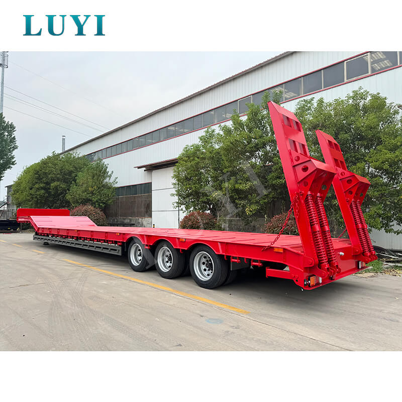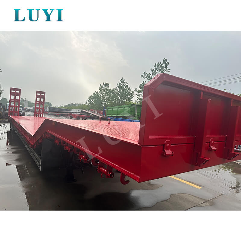 LUYI 3-एक्सल 80-टन लो-चेसिस फ्लैटबेड सेमी-ट्रेलर, शेडोंग, चीन से एक बिल्कुल नया हेवी-ड्यूटी परिवहन वाहन, भारी उपकरण परिवहन परिदृश्यों के लिए तैयार किया गया है।