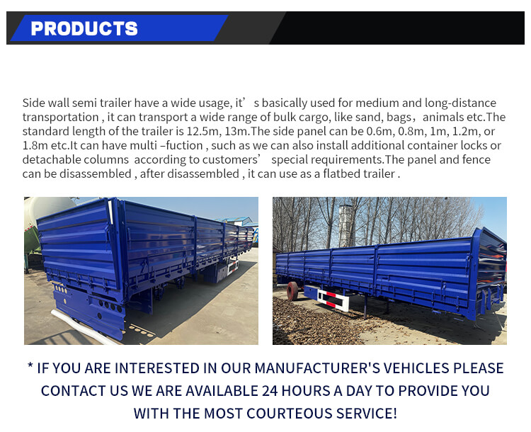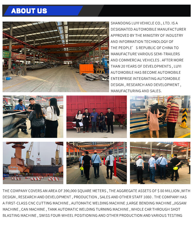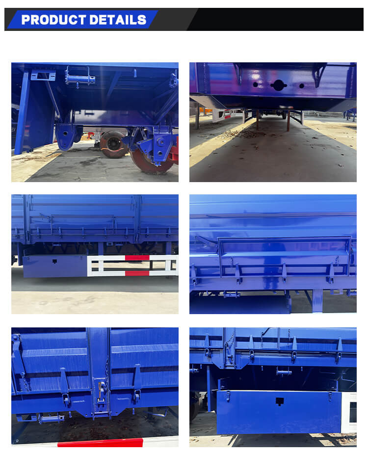 ट्रेलर का माप 12500×2500×1600 मिमी है, जो सुचारू ड्राइविंग और विश्वसनीय लोड-बेयरिंग सुनिश्चित करने के लिए 3 एक्सल (प्रत्येक 13 टन) और एक यांत्रिक निलंबन प्रणाली से सुसज्जित है। यह सुरक्षित लोडिंग और अनलोडिंग संचालन के लिए मानक 28-टन लैंडिंग गियर के साथ मेल खाता है, और विभिन्न सड़क स्थितियों के अनुकूल 12R22.5/12.00R20/11R22.5 विनिर्देशों में टायर हैं। इसके अलावा, 90×13×10 मिमी लीफ स्प्रिंग्स भार-वहन क्षमता को बढ़ाते हैं, यांत्रिक सीढ़ी परिचालन सुविधा में सुधार करती है, और रंगों को आवश्यकतानुसार अनुकूलित किया जा सकता है, जो रसद और परिवहन के लिए एक लचीला और विश्वसनीय अनुकूलित समाधान प्रदान करता है।