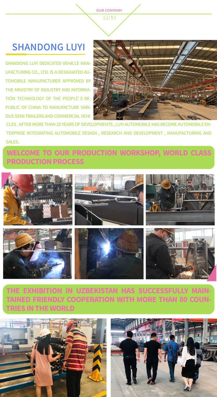 व्यक्तिगत प्राथमिकताओं को पूरा करने के लिए अनुकूलन योग्य रंगों की पेशकश करते हुए, यह सेमी-ट्रेलर विविध परिवहन परिदृश्यों के लिए एक्सल समायोजन (2/3/4 एक्सल) का भी समर्थन करता है। LUYI के सख्त गुणवत्ता नियंत्रण और पेशेवर बिक्री-पश्चात सेवा द्वारा समर्थित, यह वैश्विक ग्राहकों के लिए टिकाऊ, कुशल और बहुमुखी परिवहन सहायता प्रदान करता है, जो सीमा पार लॉजिस्टिक्स में एक विश्वसनीय भागीदार बन जाता है।