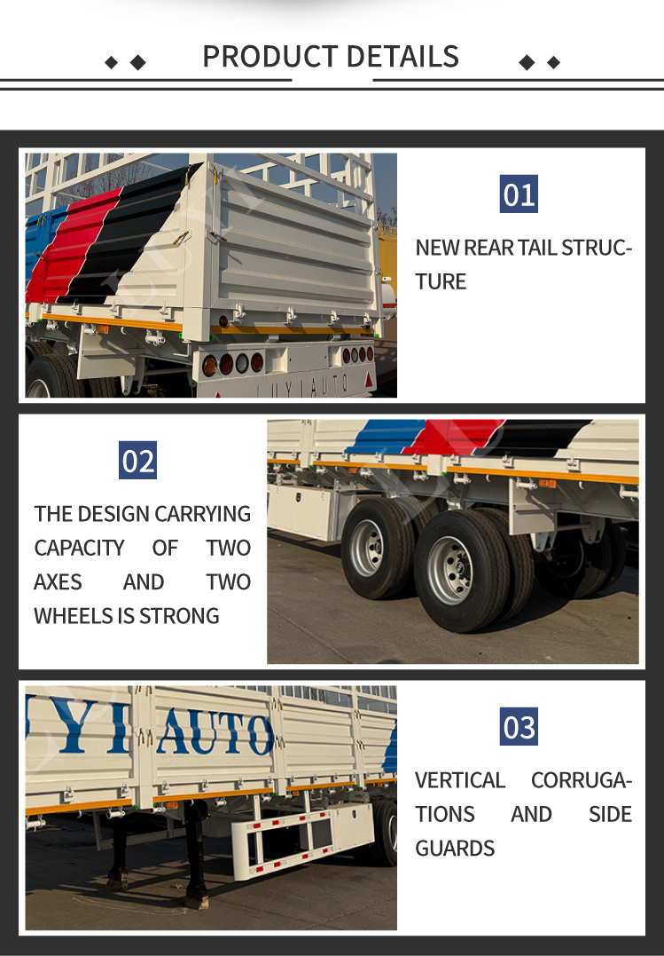 LUYI का नया डिज़ाइन किया गया 2-एक्सल हाई फेंस साइड वॉल सेमी-ट्रेलर 30 और 60 टन की दोहरी भार क्षमता प्रदान करता है, जो निर्माण सामग्री, औद्योगिक उपकरण और कृषि उपज जैसी मध्यम और भारी माल ढुलाई आवश्यकताओं को पूरी तरह से पूरा करता है। ऊंची बाड़ संरचना पारगमन के दौरान कार्गो के रिसाव को प्रभावी ढंग से रो......