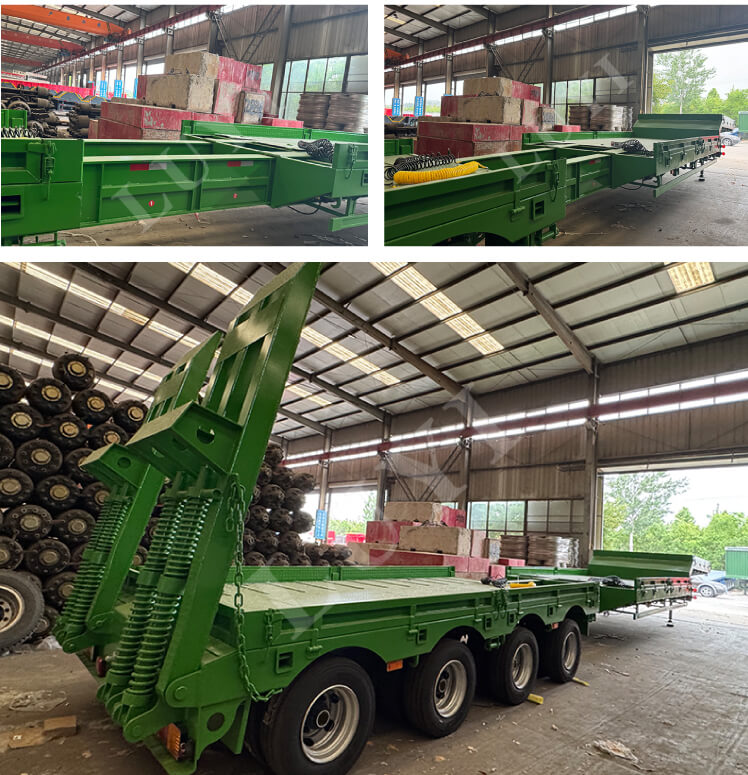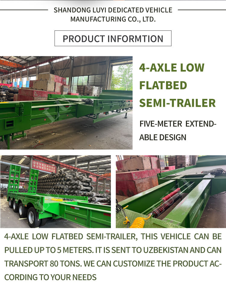 LUYI 4-एक्सल 60T गोज़नेक लो-बेड सेमी-ट्रेलर, शेडोंग, चीन का एक उच्च गुणवत्ता वाला हेवी-ड्यूटी परिवहन वाहन, भारी उपकरण परिवहन के लिए तैयार किया गया है। प्रीमियम स्टील से निर्मित, इसमें 22000×3000×1600 मिमी के आयाम और 60T का अधिकतम पेलोड है, जो विभिन्न भारी मशीनरी के परिवहन को आसानी से संभालता है।