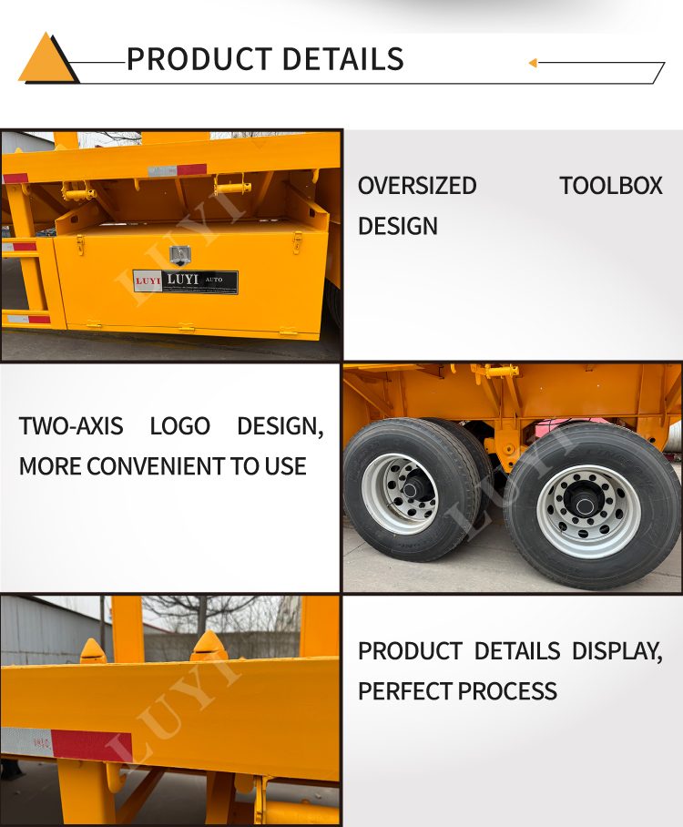 LUYI का 2-एक्सल 40-टन कॉलम फ्लैटबेड ट्रेलर व्यापक अनुकूलन विकल्पों के साथ लकड़ी के परिवहन के लिए तैयार किया गया है। लॉग, लकड़ी, या अन्य लकड़ी के उत्पादों को फिट करने के लिए साइडबोर्ड की ऊंचाई (30-80 सेमी उपलब्ध) को समायोजित करें, और बेहतर पकड़ के लिए चेकर प्लेट स्टील या एंटी-स्लिप लेपित डेक के बीच चयन करें।