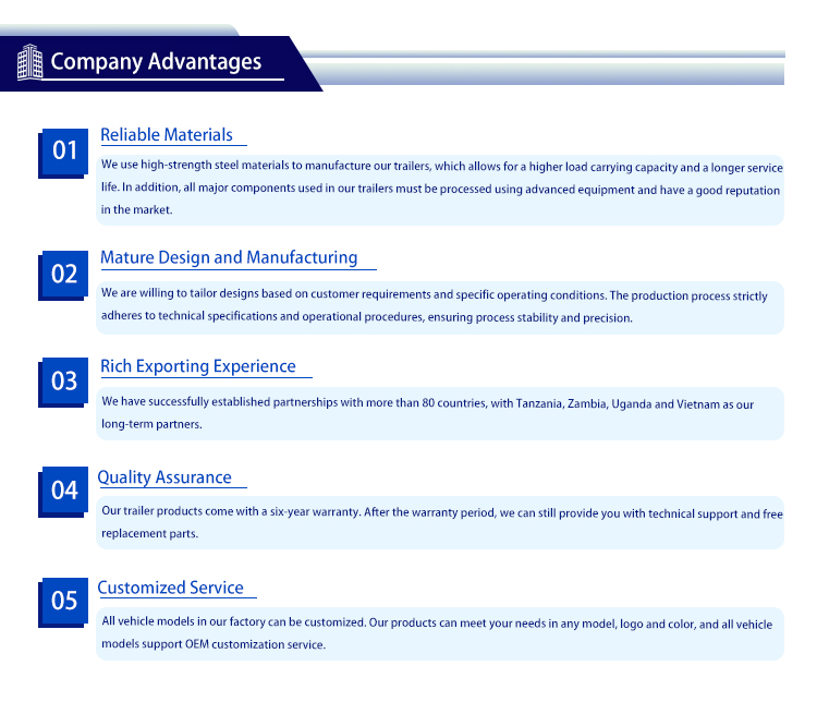 अपने व्यवसाय के लिए सही परिवहन समाधान खोजने के लिए तैयार हैं? अर्ध-ट्रेलर, डंप ट्रकों या अन्य उपकरणों के लिए एक अनुकूलित उद्धरण प्राप्त करने के लिए आज हमें अपनी जांच भेजें। हमारी टीम यह सुनिश्चित करने के लिए तुरंत जवाब देगी कि आपकी आवश्यकताएं सटीक और दक्षता के साथ पूरी हो।